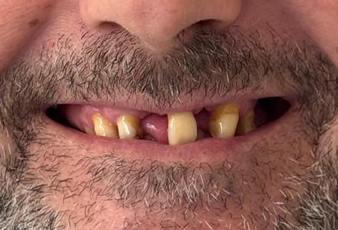 Este paciente chegou até nós com falta de muitos dentes no maxilar superior, sentindo-se limitado e inseguro ao sorrir, falar ou comer. A perda dentária afetava não só a sua aparência, mas também a sua autoestima e qualidade de vida.